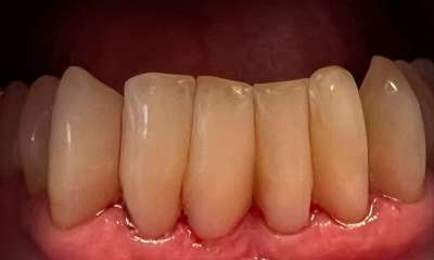 Minimally invasive, no-drill treatment, to treat white-spot lesions and improve cosmetics of patient's front 6 teeth.