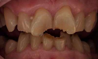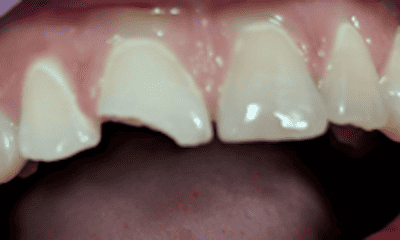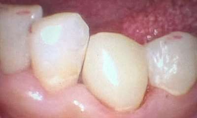 Fractured tooth fixed with a tooth colored composite filling.
