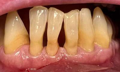 Bioclear composite treatment to get rid of "black triangles" and spaces between lower front teeth. These spaces are common on teeth that have had gum recession and roots exposed.