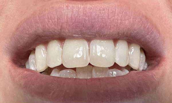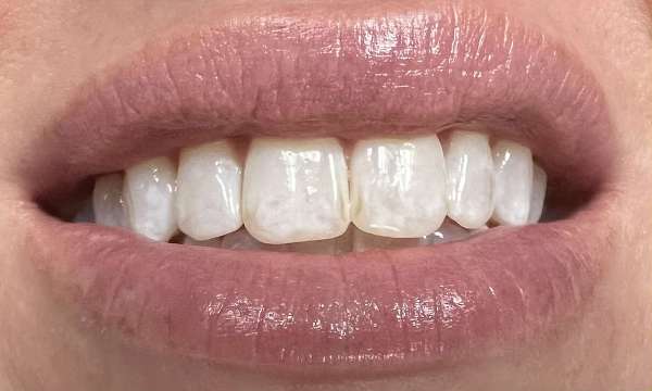 Minimally invasive, no-drill treatment, to treat white-spot lesions and improve cosmetics of patient's front 6 teeth.